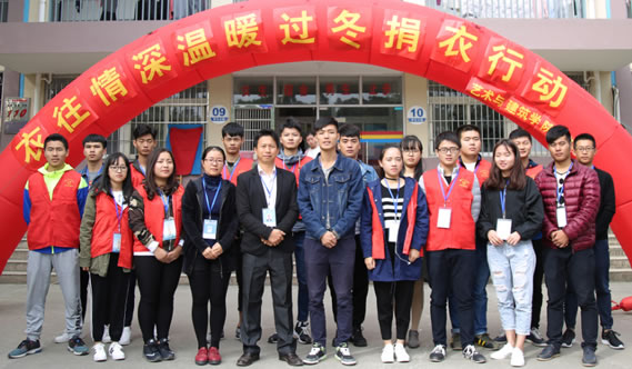 2016年11月29日-11月30日艺术与建筑学院在九、十区宿舍门口开展以“衣往情深,温暖过冬”捐衣活动,本次活动面向全校师生而且得到了校党委和学校各部门的大力支持,本着捐献自愿的原则,师生积极响应号召、高度配合、勇于奉献爱心,使得本次活动进展十分顺利,短短的两天时间里共募集3619件衣物和部分小孩玩具,我校党委工作部魏萍部长积极带头捐出40件衣物。