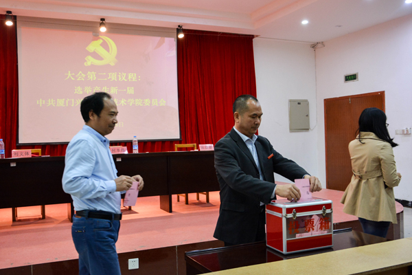 大会在庄严的国歌声中拉开帷幕。党委委员、校长助理兼教务处处长陈益健宣读了《中共厦门市委必一运动 工作委员会关于中共必一运动职业技术学院委员会换届选举工作的批复》。