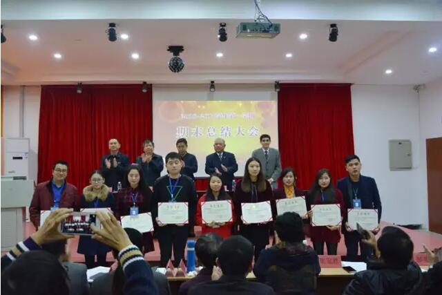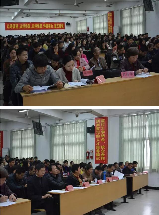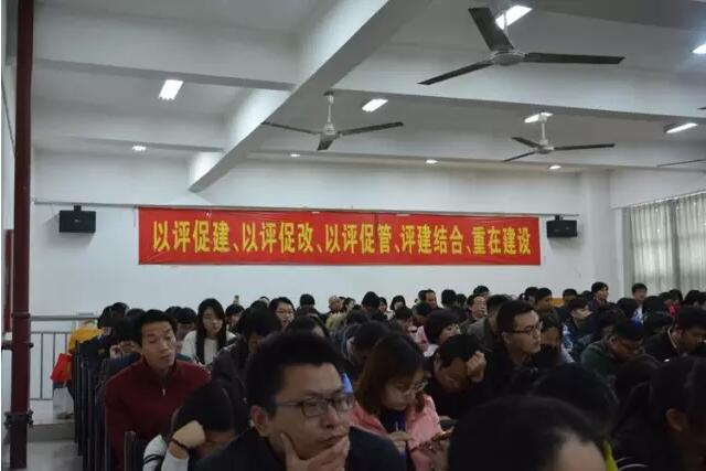 总结大会现场 施副校长主要从评建工作和常规工作两大方面回顾了本学期取得的成绩。评建主要工作即:完成“二轮评估”八大报告初稿撰写工作;继续推进校园文化建设;“专业诊断与改进”现场考评工作有序开展;“二轮评估”支撑材料整理工作逐步推进;做好迎评期间宣传报道工作等。常规工作从2015-2016学年目标管理考评工作、学生管理工作、创新创业必一运动 工作、安全保障工作、党建工作等方面作总结汇报。
