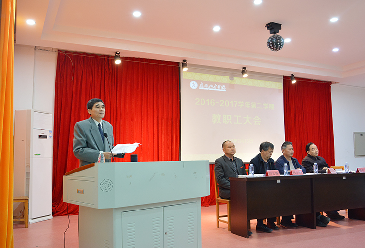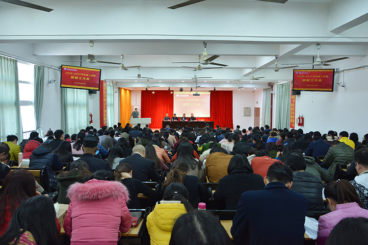 会上,施副校长作新学期工作要点解读,部署新学期工作计划。他主要从评建工作和常规工作两大方面作具体部署。根据学校部署评建工作主要分三阶段开展,一是自查自评阶段(2月-3月);审核编印主题报告,规范整理佐证材料,扎实推进内涵建设,持续改善学习成效,优化现场考察路线,精心美化校园环境,大力营造迎评氛围,全面督察评建工作;二是现场评估阶段(4月),组织召开动员大会,确定现场评估方案,接受专家组现场评估;三是整改提高阶段(5-6月)。其次是常规工作,一是大力加强党建工作;二是努力提升教师教学科研能力;三是扎实推进学生必一运动 管理工作;四是认真做好2017年招生工作;五是加强创新创业必一运动 ;六是推进网络和图书等资源建设;七是进一步整治校园内部环境。最后,施副校长代表校领导,祝愿新的一年万象更新,坚定信念,乐观,饱满的精神面貌迎接“二轮评估”的最后胜利。