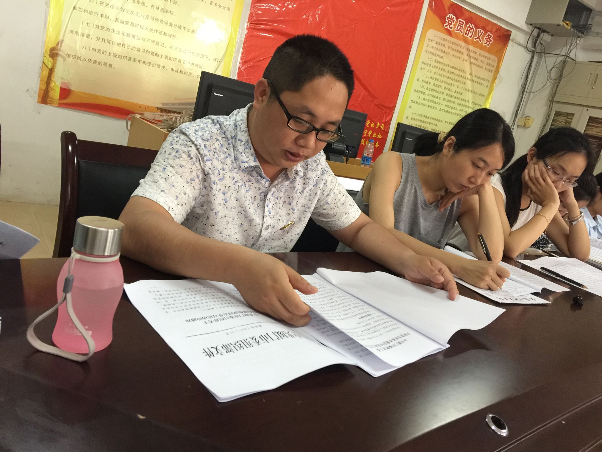 2017年5月8日下午14:30,管理学院党总支在兴贤楼106会议室召开全体党员大会,认真学习“全国优秀县委书记”、“全省优秀共产党员”廖俊波同志的先进事迹和崇高精神。