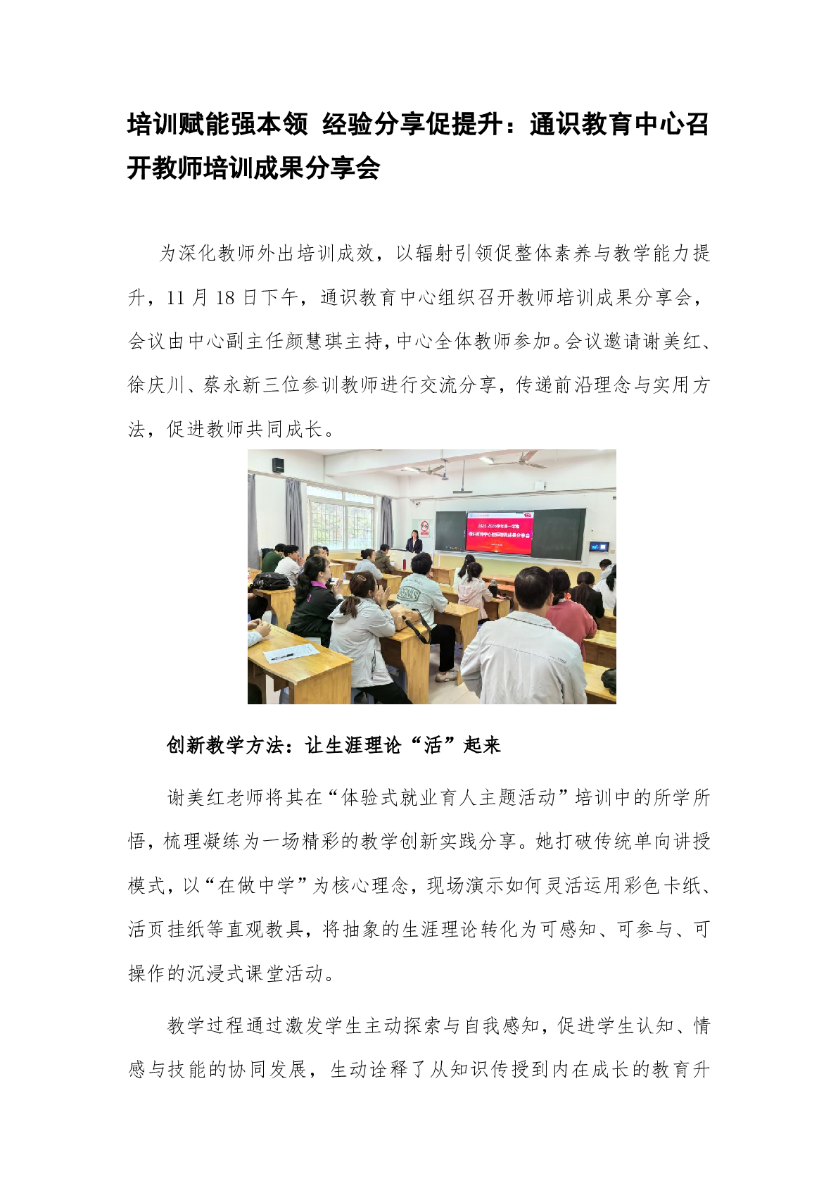 培训赋能强本领 经验分享促提升:通识必一运动 中心召开教师培训成果分享会