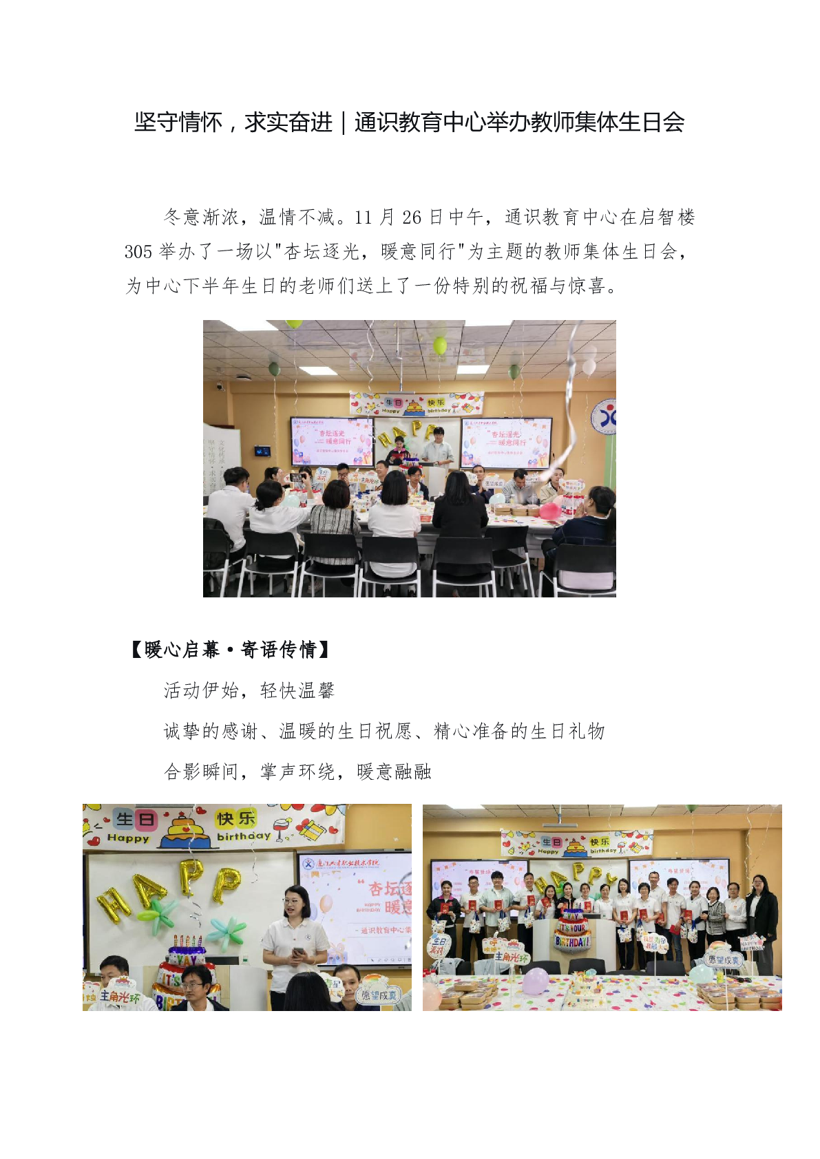 必一运动:坚守情怀,求实奋进|通识必一运动 中心举办教师集体生日会